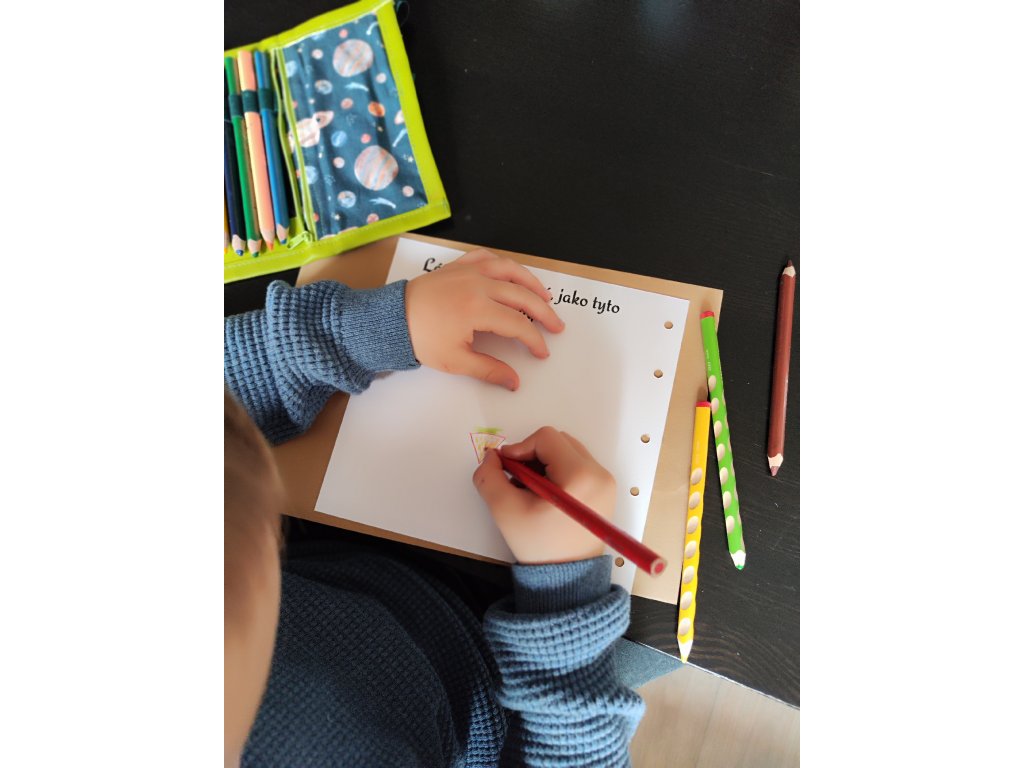 Díky přiloženému obrázku, který slouží jako předloha, se děti při kreslení mají o co opřít. Vlastní obrázek můžou nakreslit jenom podle své fantazie, nebo pomocí předlohy, díky které budou cítit jistotu v tom, že vědí, jak co vypadá. Předloha je vytištěná na samostatném kvalitním vroubkovaném papíře a po dokončení knížky ji můžete využít jako dekoraci v pokojíčku nebo někomu dále podarovat.
