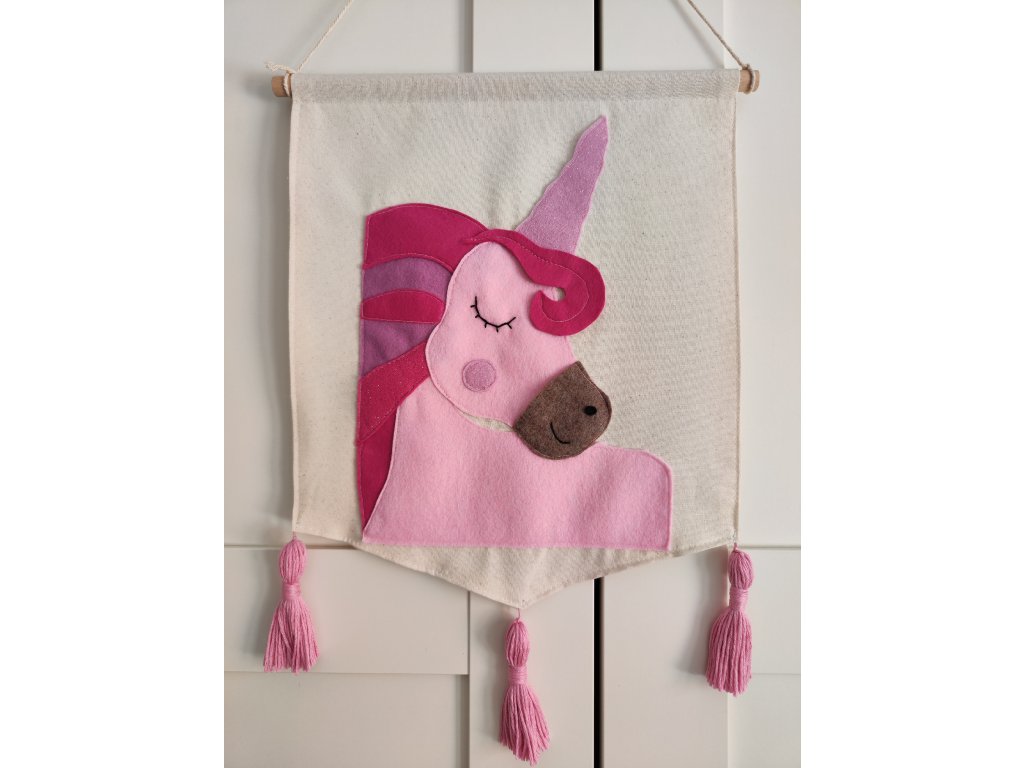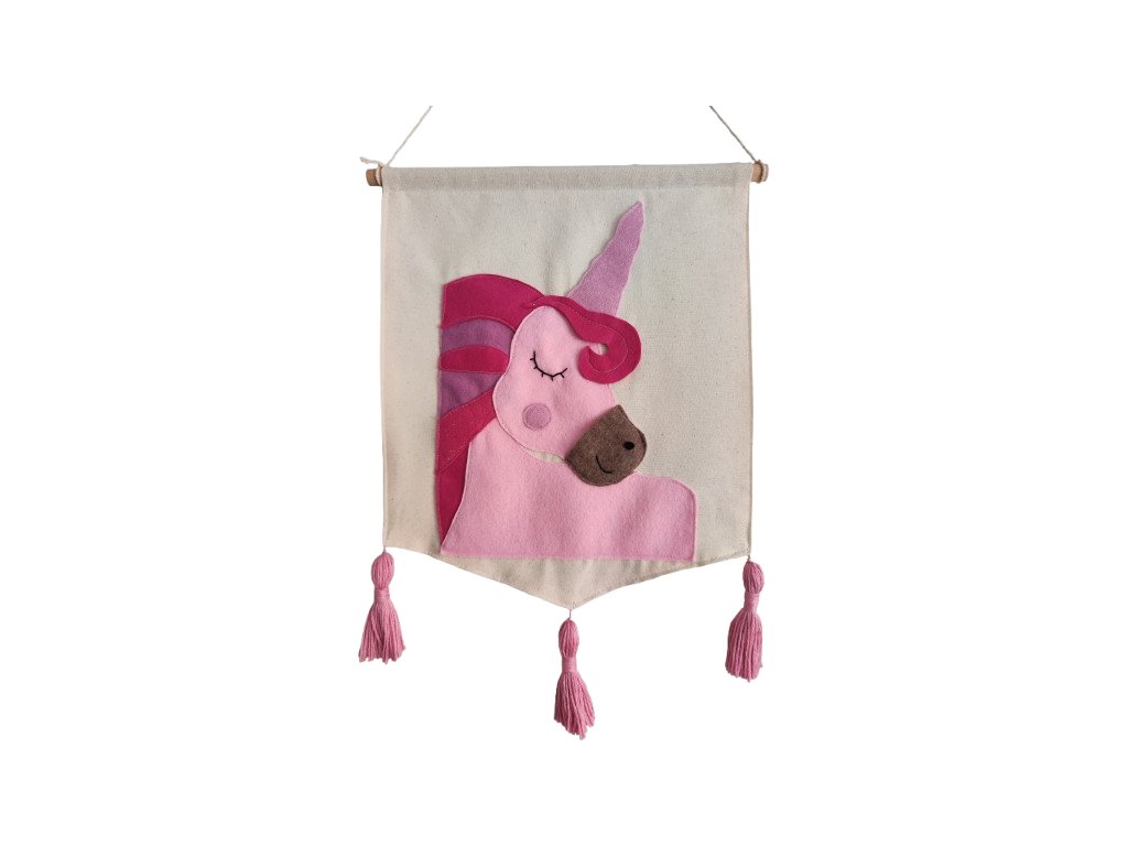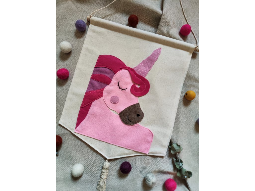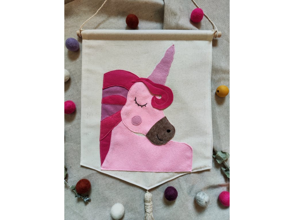 Nástěnná dekorace ve tvaru vlajky je vyrobena ze